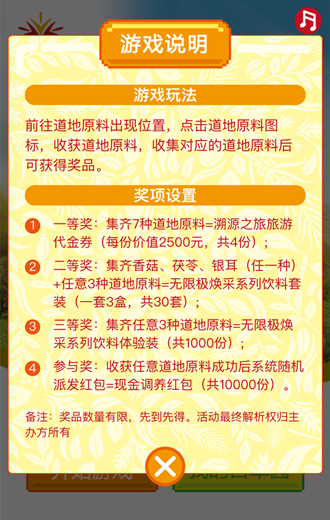 项目亮点:利用航拍图,实现720°的H5全景展示,加上模仿时下走红的pokeon游戏玩法,将产品融入游戏,720°移动手机屏幕,在溯源之旅道地的纯天然环境探索寻找宝物,收集齐宝物能兑换不同的产品体验。